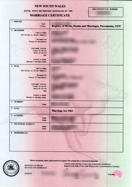 ただその後、大使館からフィアンセビザの発行が入籍日には間に合わないと連絡があり、考えた末、入籍日を変更しオーストラリア滞在中に入籍して帰国しました。